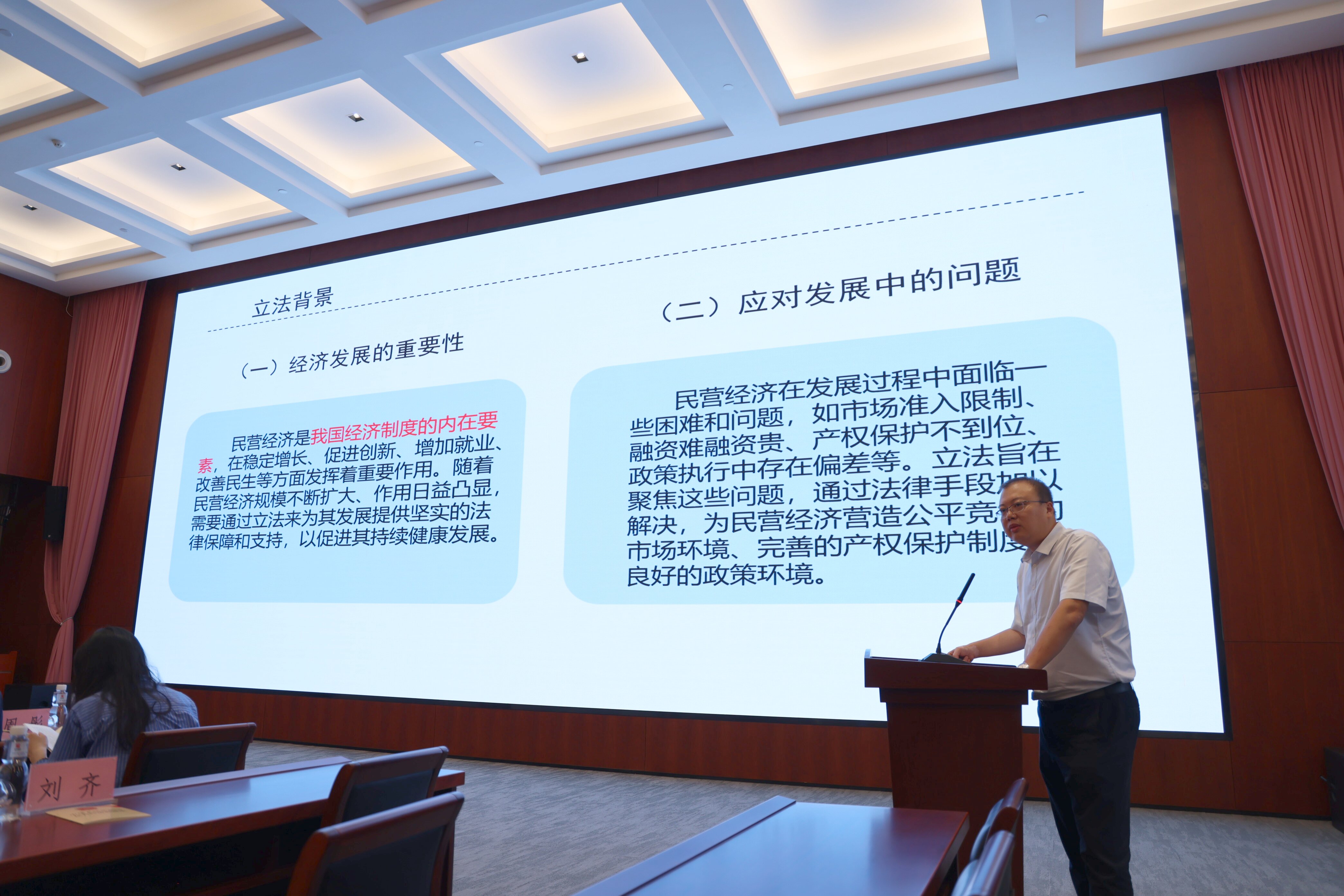政策解讀環(huán)節(jié),省發(fā)改委營商辦劉斌主任對《中華人民共和國民營經(jīng)濟促進法》進行了深刻的宣貫與解讀,結合立法背景、重要意義與數(shù)據(jù)說明,幫助參會人員精準把握政策,并表示,發(fā)改委營商辦將始終想企業(yè)所想、急企業(yè)所急、辦企業(yè)所需。